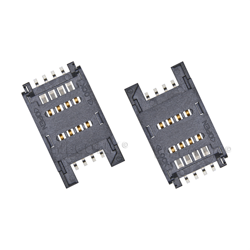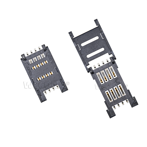 Product name: SIM card connector flip type 8pin(2.5H) Part Number:WL-SIM180-103 Specification:Plastic: black high temperature UL94V-0; terminal: copper alloy; shell: stainless steel
