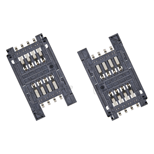 Product name: SIM card connector flip type 8pin(2.5H) Part Number:WL-SIM521-08--NA0(without positioning column) Specification:Plastic: black high temperature UL94V-0; terminal: copper alloy; shell: stainless steel