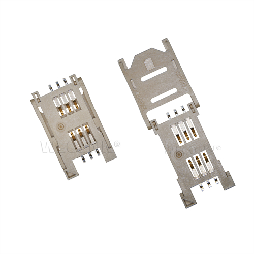 Product name: SIM card connector flip type 6pin(2.8H) Part Number:WL-SIM713-001-NA0 Specification:Plastic: white high temperature UL94V-0; terminal: copper alloy; shell: stainless steel