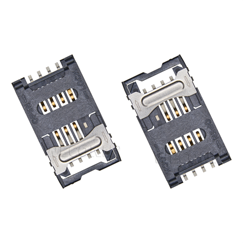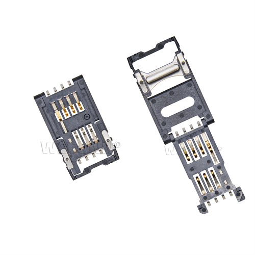 Product name: SIM card connector flip type 6+2pin(2.5H) Part Number:WL-SIM706-002 Specification:Plastic: black high temperature UL94V-0; terminal: copper alloy; shell: stainless steel