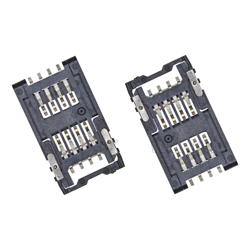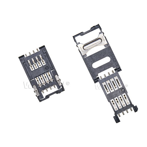 Product name: SIM card connector flip type 8pin(2.5H) Part Number:WL-SIM705-004 Specification:Plastic: black high temperature UL94V-0; terminal: copper alloy; shell: stainless steel