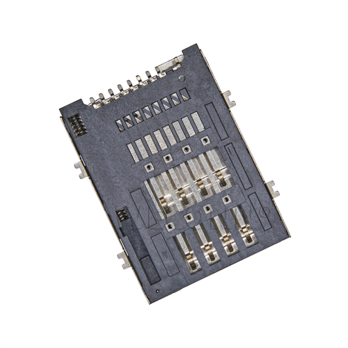 Product name: SIM card connector push push type 6+1pin(1.8H) Part Number:WL-SIM180-101 Specification:Plastic: black high temperature UL94V-0; terminal: copper alloy; shell: stainless steel