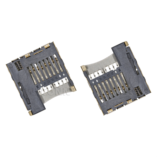 Product name: TF card connector push push type 8pin(1.85H) Part Number:WL-TF190-007 Specification:Plastic: black high temperature UL94V-0; terminal: copper alloy; shell: stainless steel