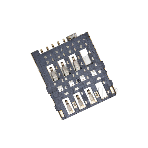 Product name: MICRO SIM card connector push pull type 6pin(1.45H) Part Number:WL-SIM145-003 Specification:Plastic: black high temperature UL94V-0; terminal: copper alloy; shell: stainless steel