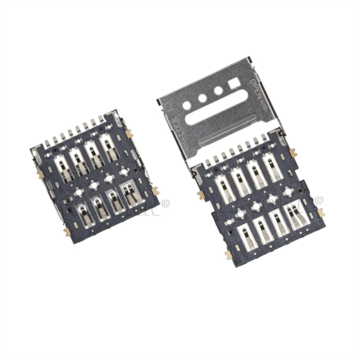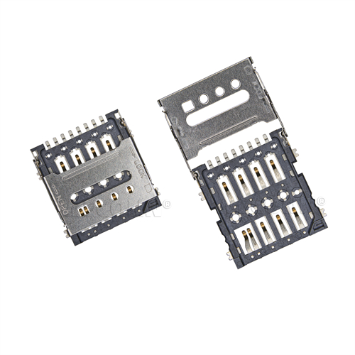 Product name: MICRO SIM card connector flip type 8pin(1.5H) Part Number:WL-SIM150-072 Specification:Plastic: black high temperature UL94V-0; terminal: copper alloy; shell: stainless steel