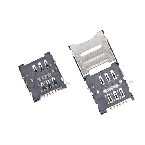Product name: MICRO SIM card connector flip type 6pin(1.5H) Part Number:WL-SIM180-012 Specification:Plastic: black high temperature UL94V-0; terminal: copper alloy; shell: stainless steel