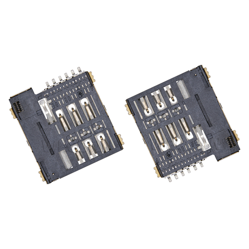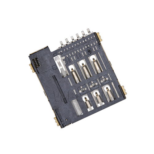 Product name: MICRO SIM card connector push push type 6pin(1.35H) Part Number:WL-SIM135-054 Specification:Plastic: black high temperature UL94V-0; terminal: copper alloy; shell: stainless steel
