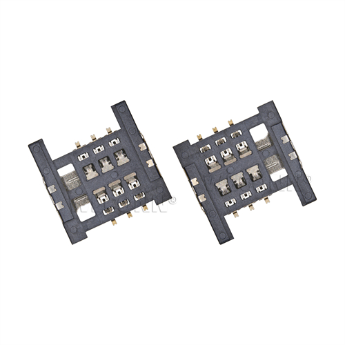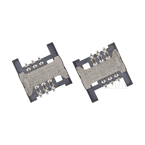 Product name: SIM card connector push pull type 6pin(1.5H) Part Number:WL-SIM150-161 Specification:Plastic: black high temperature UL94V-0; terminal: copper alloy; shell: stainless steel