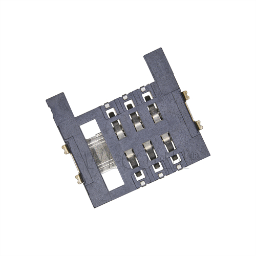 Product name: SIM card connector push pull type 6pin(1.9H) Part Number:WL-SIM200-013A Specification:Plastic: black high temperature UL94V-0; terminal: copper alloy; shell: stainless steel