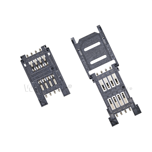 产品名称:SIM 翻盖式 8pin(2.5H) 产品料号:WL-SIM521-08-NA0 产品规格:塑胶:黑色耐高温 UL94V-0 端子:磷铜 外壳:LCP