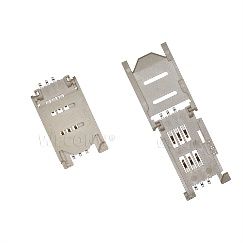 产品名称:SIM 翻盖式 6pin(2.5H) 产品料号:WL-SIM714-000 产品规格:塑胶:本色耐高温 UL94V-0 端子:磷铜 外壳:不锈钢