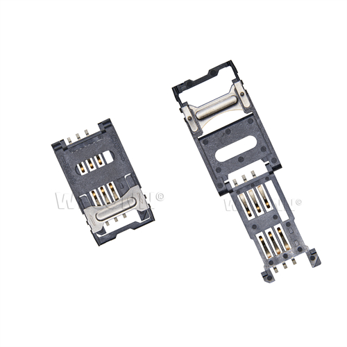 产品名称:SIM卡座 翻盖式 6Pin(2.5H) 产品料号:WL-SIM705-003 产品规格:塑胶:黑色耐高温 UL94V-0 端子:磷铜 外壳:LCP