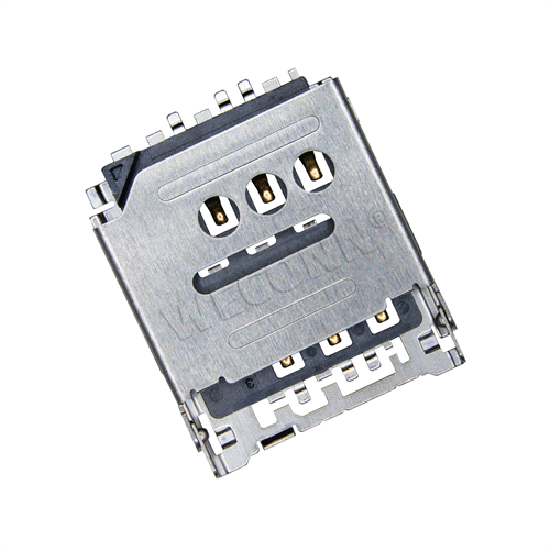 产品名称:MICRO SIM卡座 产品料号:WL-SIM150-869 产品规格:翻盖式 6P 1.5H 端子:磷铜 外壳:不锈钢