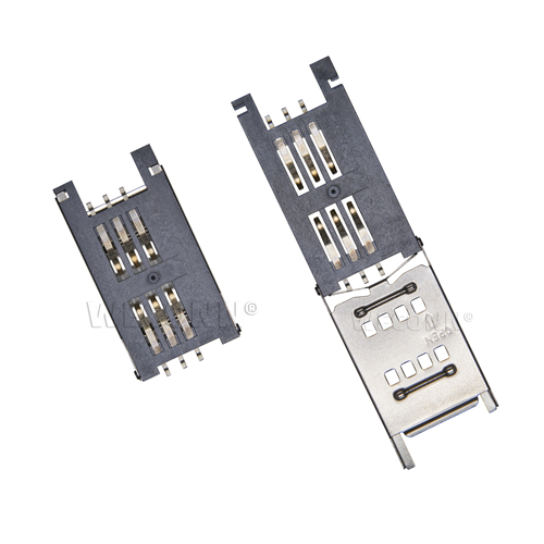 Product name: SIM card connector flip type 6pin(2.9H) Part Number:WL-SIM180-099 Specification:Plastic: black high temperature UL94V-0; terminal: copper alloy; shell: stainless steel
