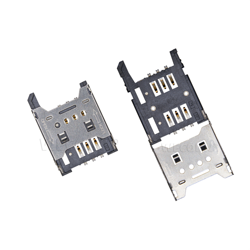 Product name: SIM card connector flip type 6pin(1.8H) Part Number:WL-SIM180-015 Specification:Plastic: black high temperature UL94V-0; terminal: copper alloy; shell: stainless steel