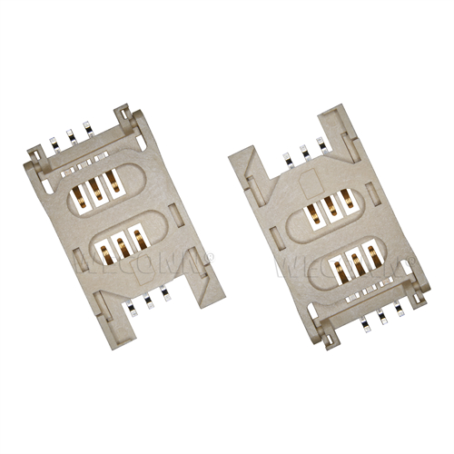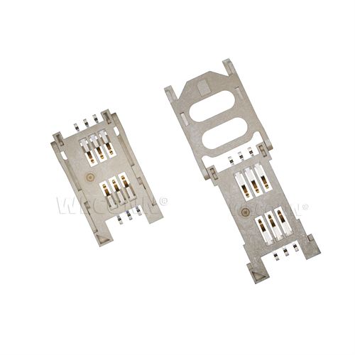 Product name: SIM card connector flip type 6pin(2.5H) Part Number:WL-714 Specification:Plastic: white high temperature UL94V-0; terminal: copper alloy; shell: stainless steel