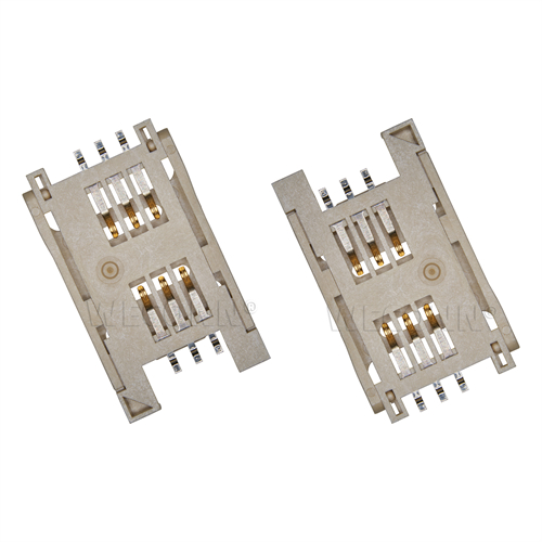 Product name: SIM card connector flip type 6pin(2.8H) Part Number:WL-SIM713-001-NA0 Specification:Plastic: white high temperature UL94V-0; terminal: copper alloy; shell: stainless steel