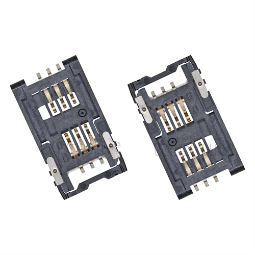 Product name: SIM card connector flip type 6pin(2.5H) Part Number:WL-SIM705-003 Specification:Plastic: black high temperature UL94V-0; terminal: copper alloy; shell: stainless steel
