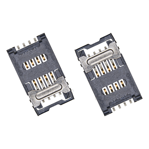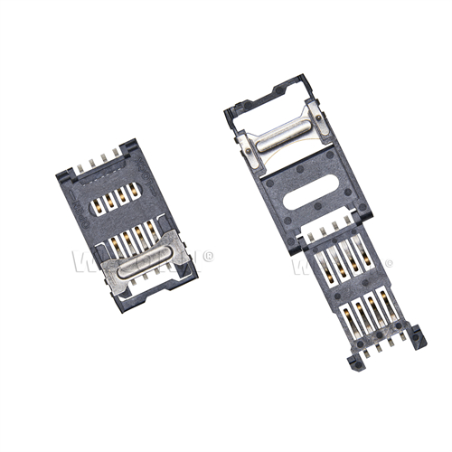 Product name: SIM card connector flip type 8pin(2.5H) Part Number:WL-SIM705-004 Specification:Plastic: black high temperature UL94V-0; terminal: copper alloy; shell: stainless steel