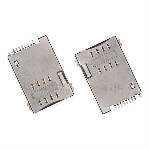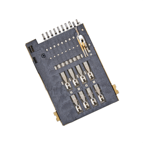 Product name: SIM card connector push push type 6+2pin(1.8H) Part Number:WL-SIM720-002 Specification:Plastic: black high temperature UL94V-0; terminal: copper alloy; shell: stainless steel