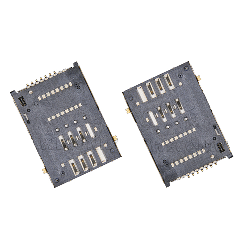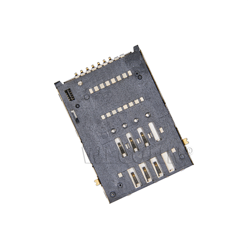 Product name: SIM card connector push push type 6+1pin(2.0H) Part Number:WL-SIM200-281 Specification:Plastic: black high temperature UL94V-0; terminal: copper alloy; shell: stainless steel