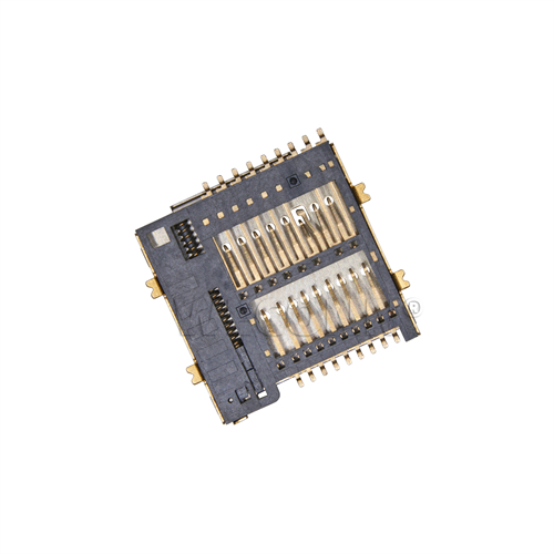 Product name: TF card connector push push type 9pin(1.5H) Part Number:WL-TF330-184B Specification:Plastic: black high temperature UL94V-0; terminal: copper alloy; shell: stainless steel