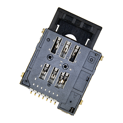 Product name: NANO SIM card connector Push-push self-locking drawer type 6+1pin(2.32H) Part Number:WL-SIM232-083 Specification:Plastic: black high temperature UL94V-0; terminal: copper alloy; shell: stainless steel