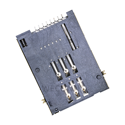 Product name: 2FF SIM card connector push push type, molex SD47553101 6+2pin(1.85H) Part Number:WL-SIM770-005 Specification:Plastic: black high temperature UL94V-0; terminal: copper alloy; shell: stainless steel