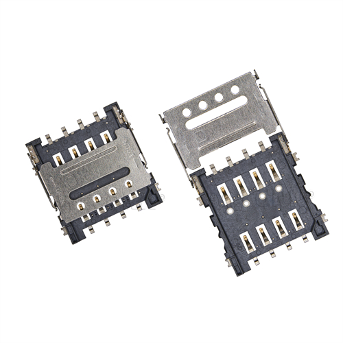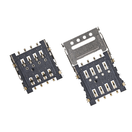 Product name: MICRO SIM card connector flip type 8pin(1.5H) Part Number:WL-SIM150-073 Specification:Plastic: black high temperature UL94V-0; terminal: copper alloy; shell: stainless steel