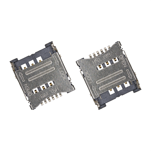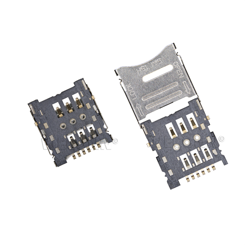 Product name: MICRO SIM card connector flip type 6pin(1.8H) Part Number:WL-SIM180-011 Specification:Plastic: black high temperature UL94V-0; terminal: copper alloy; shell: stainless steel