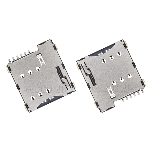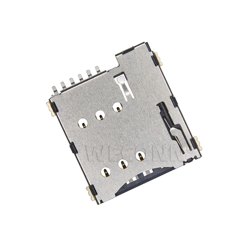 Product name: MICRO SIM card connector push push type 6pin(1.35H) Part Number:WL-SIM135-054 Specification:Plastic: black high temperature UL94V-0; terminal: copper alloy; shell: stainless steel