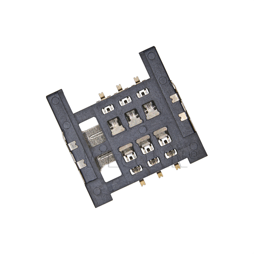 Product name: SIM card connector push pull type 6pin(1.5H) Part Number:WL-SIM150-161 Specification:Plastic: black high temperature UL94V-0; terminal: copper alloy; shell: stainless steel