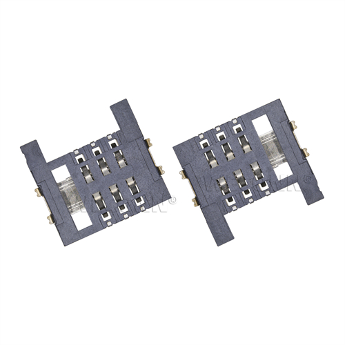 Product name: SIM card connector push pull type 6pin(1.9H) Part Number:WL-SIM200-013A Specification:Plastic: black high temperature UL94V-0; terminal: copper alloy; shell: stainless steel