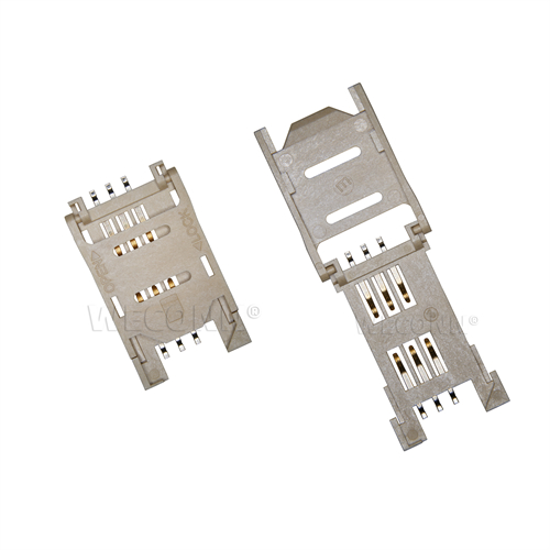 产品名称:SIM卡座 翻盖式 6Pin(2.8H) 产品料号:WL-SIM713-001-NA0 产品规格:塑胶:黑色耐高温 UL94V-0 端子:磷铜 外壳:LCP