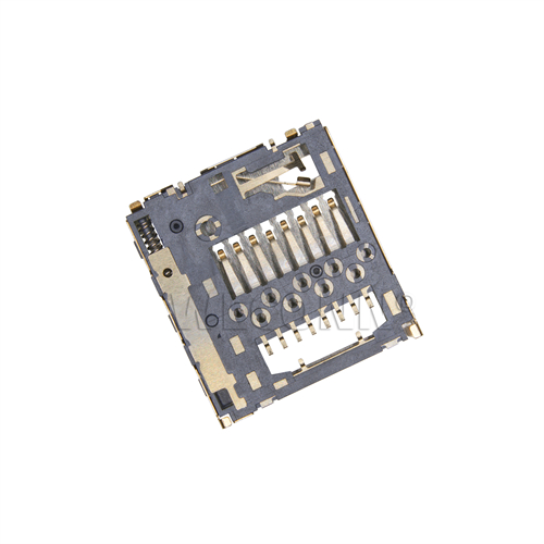 产品名称:TF卡座自弹式8P(1.29H) 产品料号:WL-TF129-139 产品规格:塑胶:黑色耐高温 UL94V-0 端子:磷铜 外壳:不锈钢