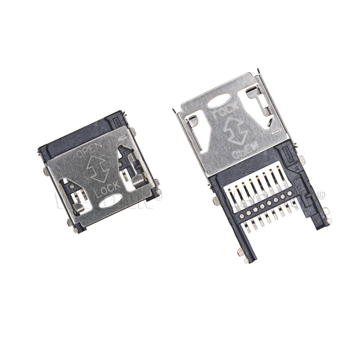 产品名称:TF卡座翻盖式8Pin(1.9H) 产品料号:WL-TF190-136 产品规格:塑胶:黑色耐高温 UL94V-0 端子:磷铜 外壳:不锈钢